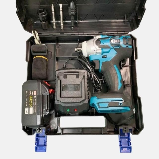 無刷電動扳手 JJ(牧田款) 兩用 21V 鋰電充電扳手+衝擊起子機 5.0AH單電 座充 簡配附塑膠工具盒/木工套筒/