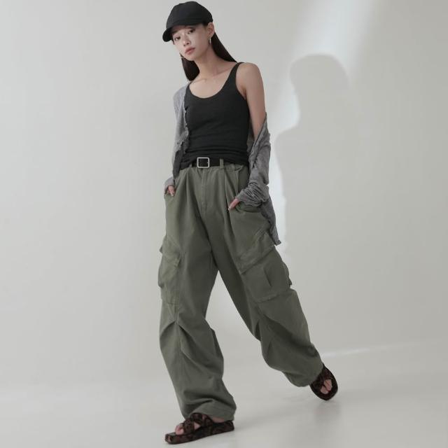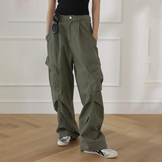 Line-up wears現貨-鬆垮街頭美式抓褶設計工裝褲(彎刀褲 香蕉褲 寬褲 降落傘褲)