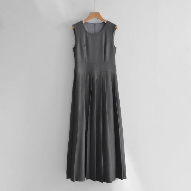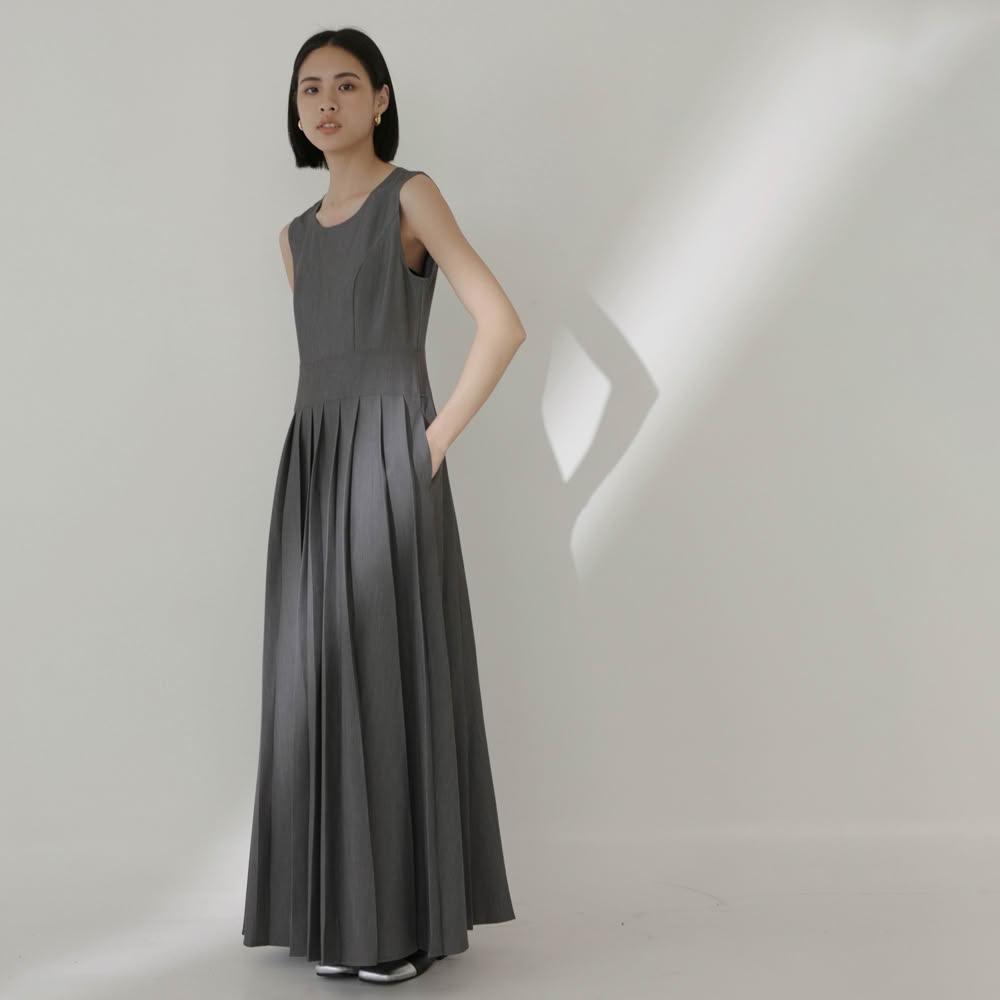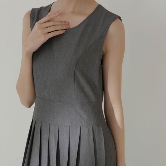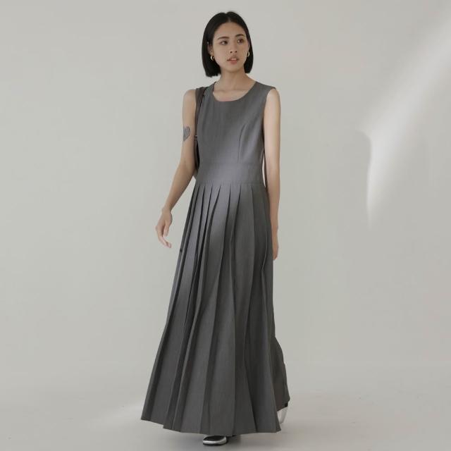Line-up wears高訂質感女主氣質灰百褶洋裝(西裝連身裙 派對 婚禮穿搭)