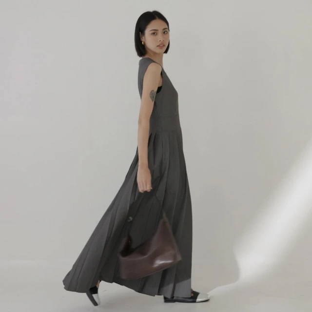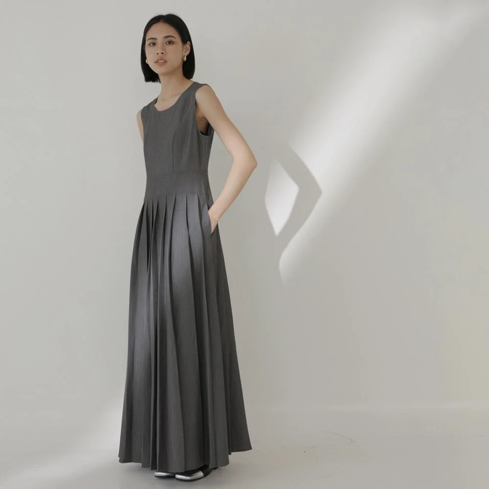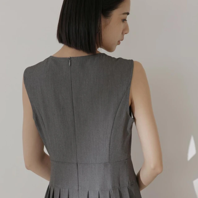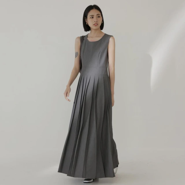 Line-up wears高訂質感女主氣質灰百褶洋裝(西裝連身裙 派對 婚禮穿搭)