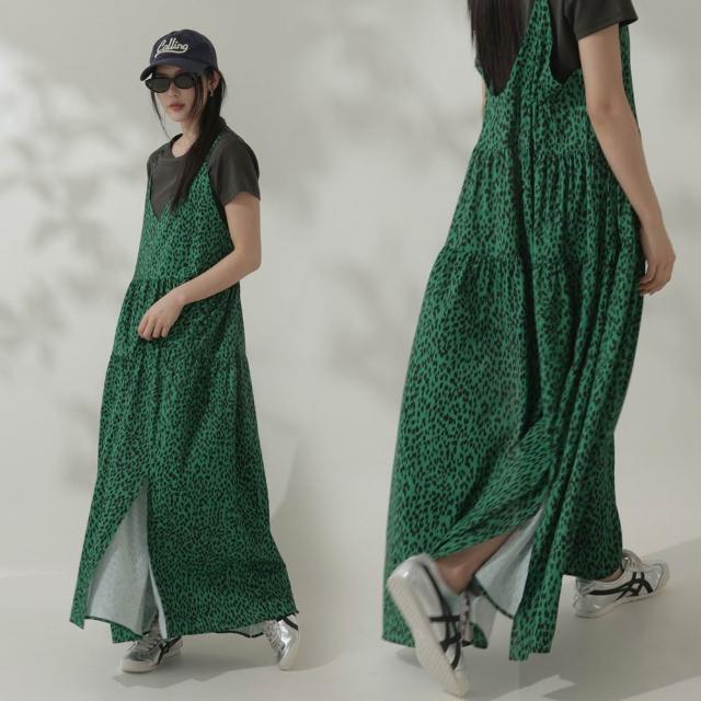 Line-up wears獨家現貨! 渡假囉~綠豹紋細肩帶洋裝( 大尺碼 豹紋裙 豹紋連身裙 豹紋洋裝)