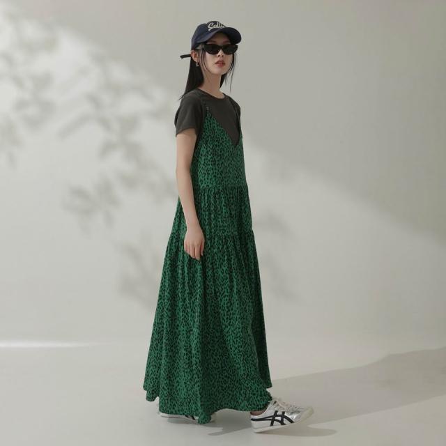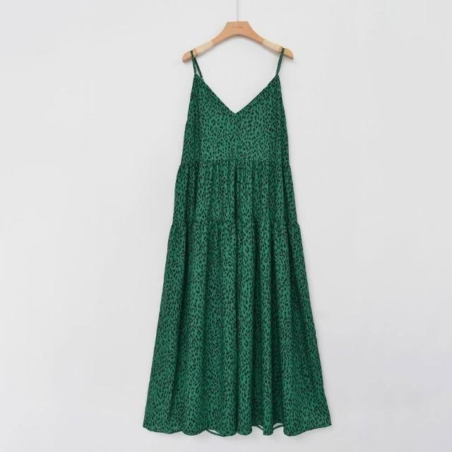 Line-up wears獨家現貨! 渡假囉~綠豹紋細肩帶洋裝( 大尺碼 豹紋裙 豹紋連身裙 豹紋洋裝)
