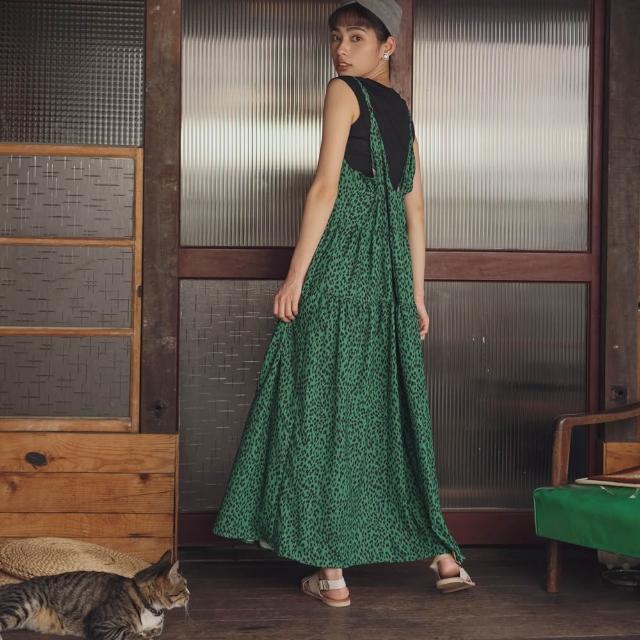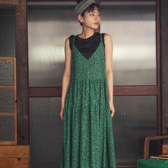 Line-up wears獨家現貨! 渡假囉~綠豹紋細肩帶洋裝( 大尺碼 豹紋裙 豹紋連身裙 豹紋洋裝)