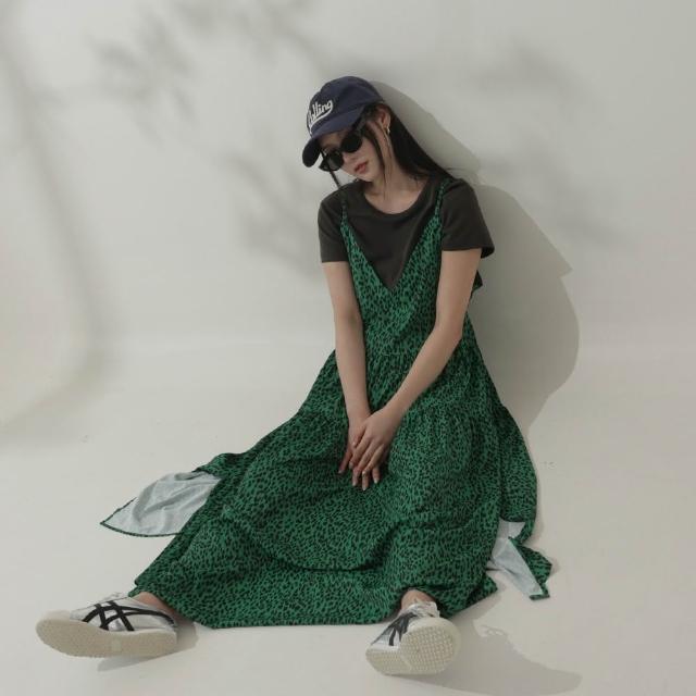Line-up wears獨家現貨! 渡假囉~綠豹紋細肩帶洋裝( 大尺碼 豹紋裙 豹紋連身裙 豹紋洋裝)
