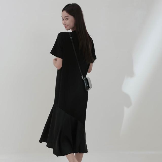 迷人又簡約拼接魚尾洋裝