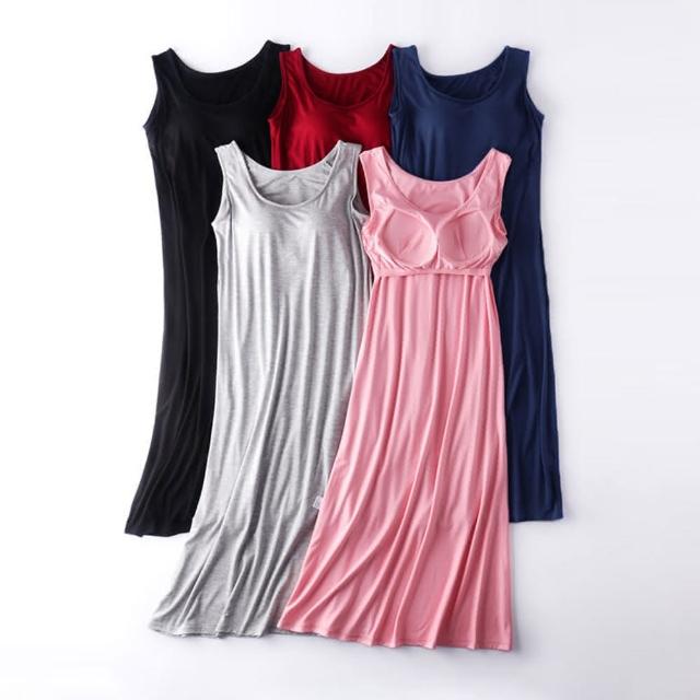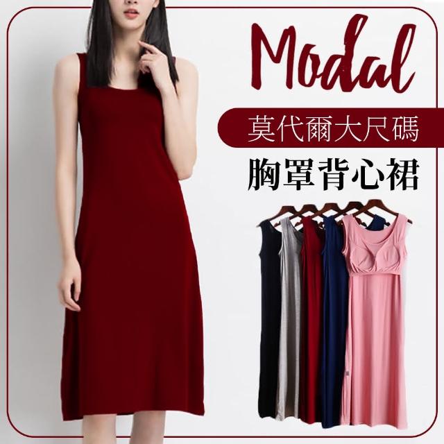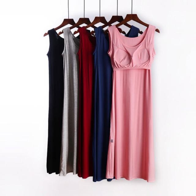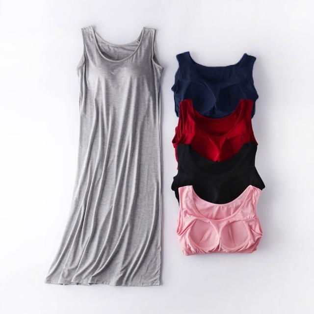 JDUDS莫代爾帶胸墊一體式背心裙 女裝上衣 親膚涼感舒適 居家服 連身睡衣 洋裝 Bra T
