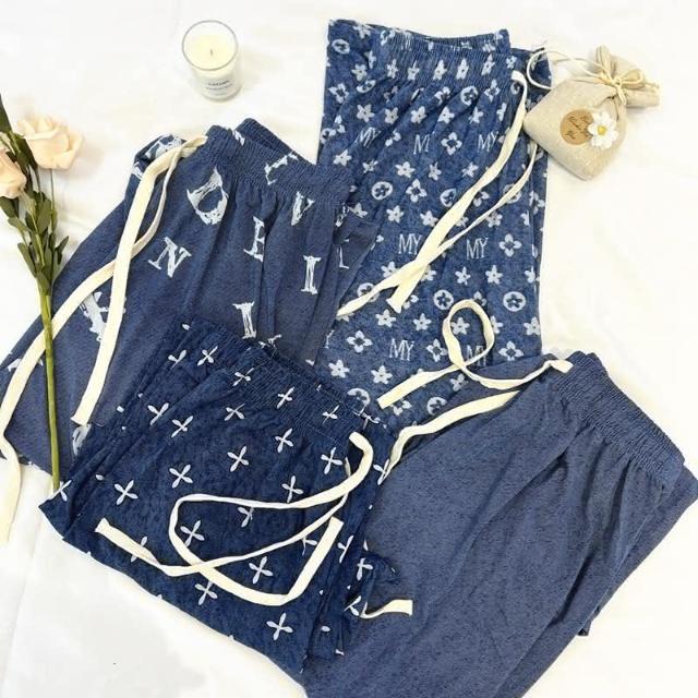 JDUDS夏季女百搭垂墜感窄版冰絲牛仔風直筒涼涼褲 字母褲 休閒褲 居家褲 褲子 下著 印花 遛灣褲 女褲