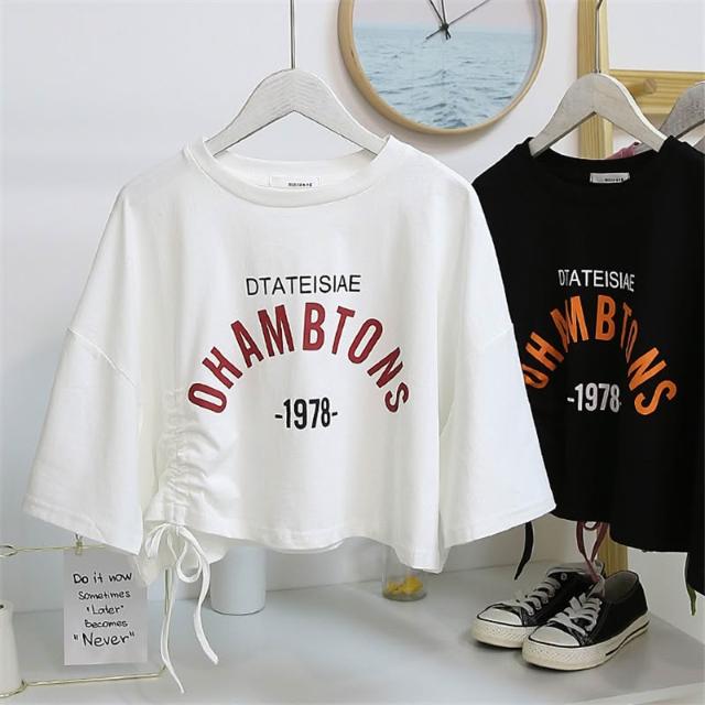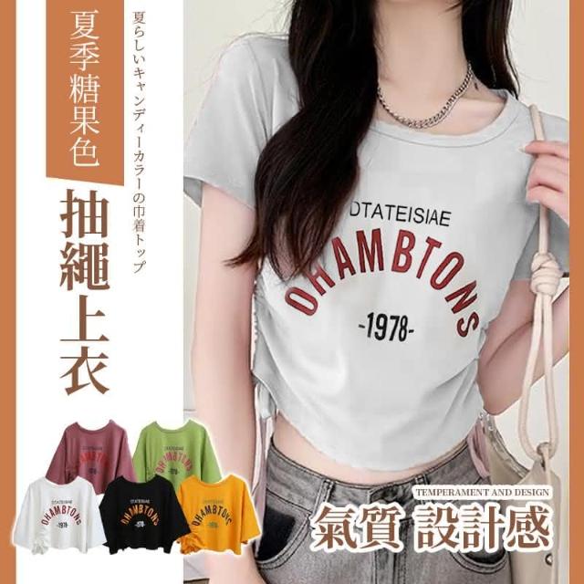 JDUDS夏季設計款小心機抽繩短款上衣 短袖 T恤 女裝 休閒運動 短版打底衫 女短袖上衣