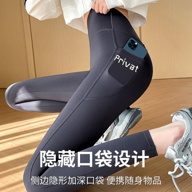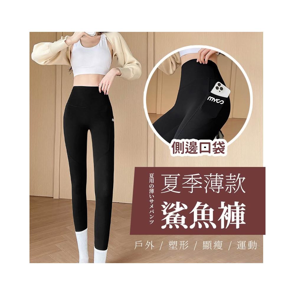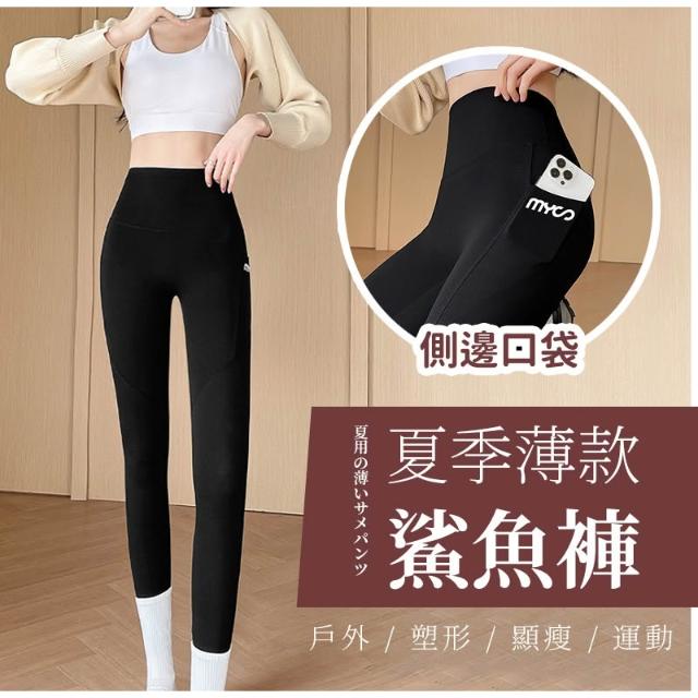 JDUDS女生瑜珈鯊魚褲 磨毛款提臀收腹 有口袋 彈力貼身 舒適運度褲 裸感舒適顯瘦 瑜珈褲 內搭褲