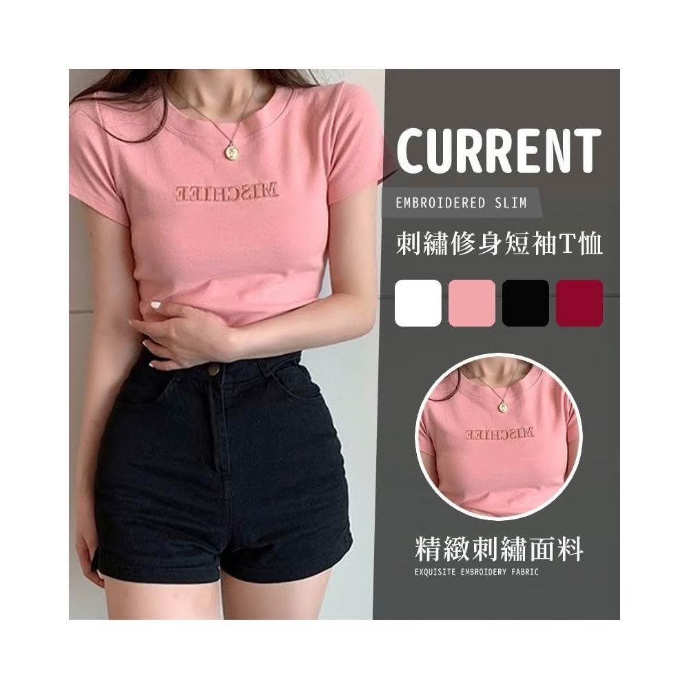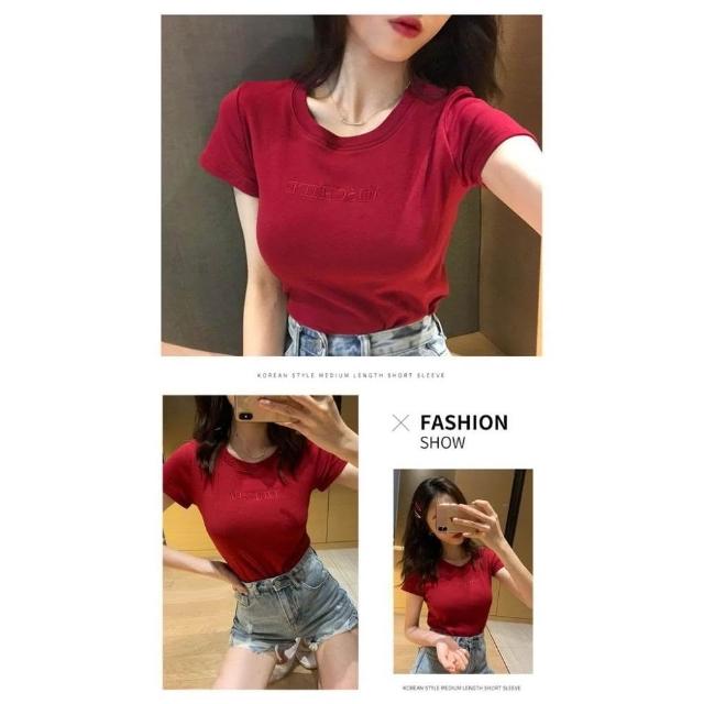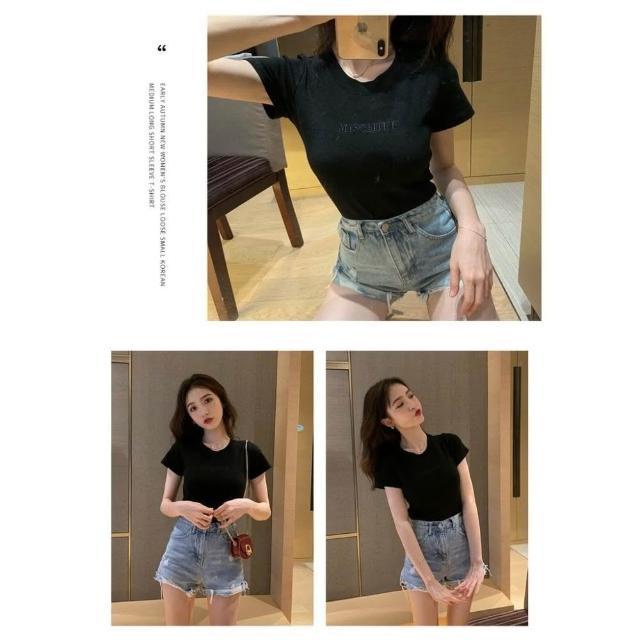 JDUDS韓系新款 字母刺繡 短袖T恤 修身 學生衣服 女上衣 女裝 女生短袖 簡約刺繡