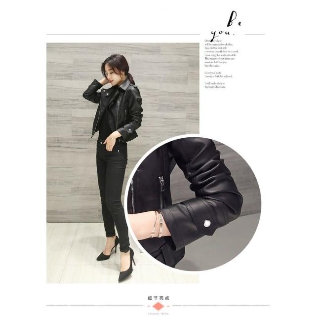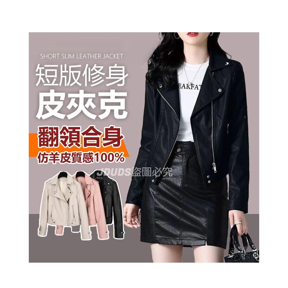 JDUDS短版修身拉鍊高級水洗皮衣 女皮夾克 女生皮衣 秋季皮衣 女皮衣 率性皮衣 翻領皮衣外套
