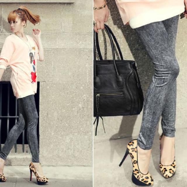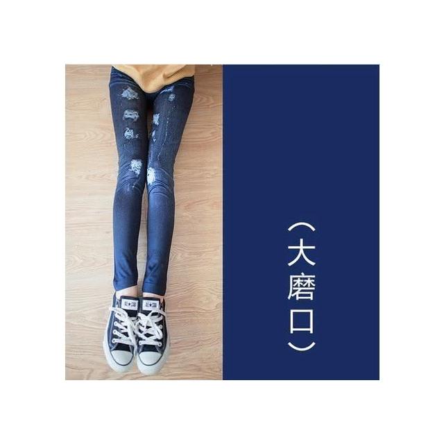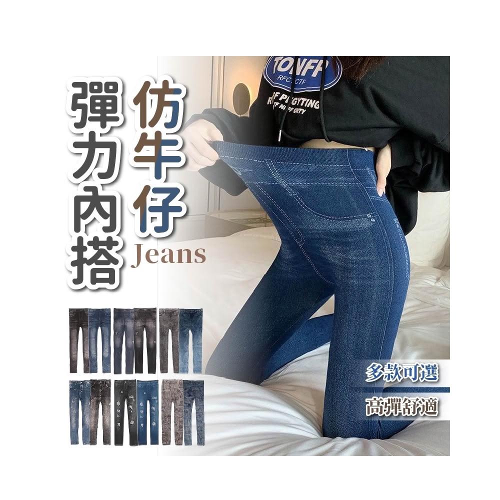 JDUDS時尚假牛仔內搭褲 打底褲 九分打底褲 仿牛仔九分褲內搭褲 假牛仔鬆緊褲 無鈕釦拉鍊 女褲