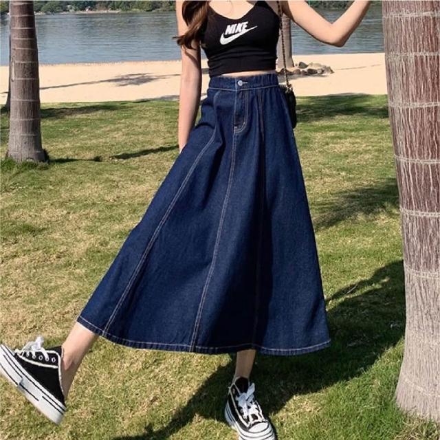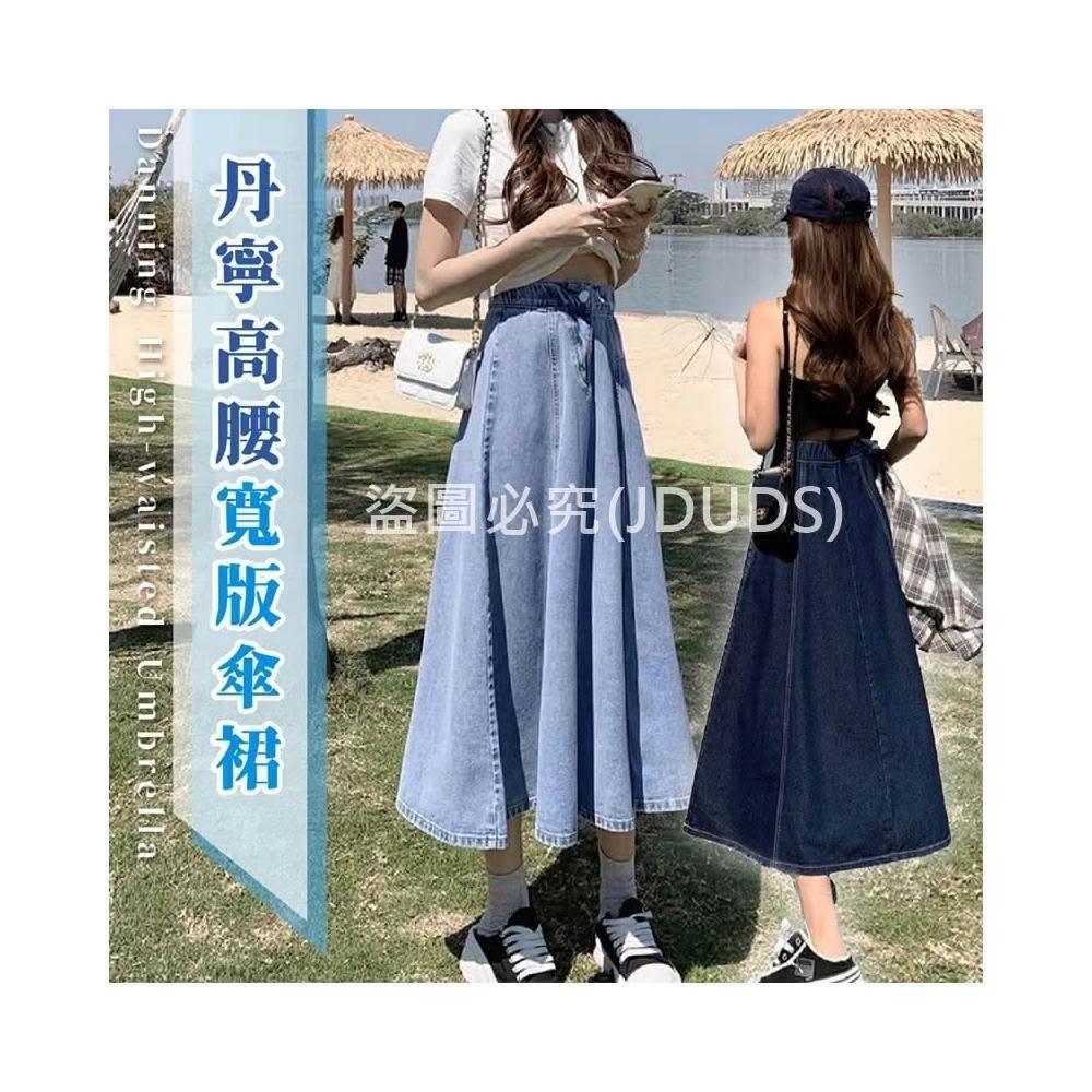 JDUDS復古高腰中長款牛仔裙 A字牛仔裙 高腰顯瘦傘裙 長裙 女裝 裙裝