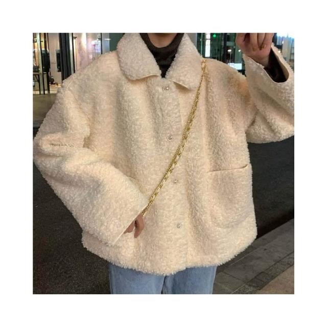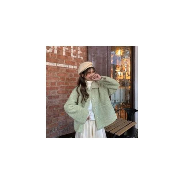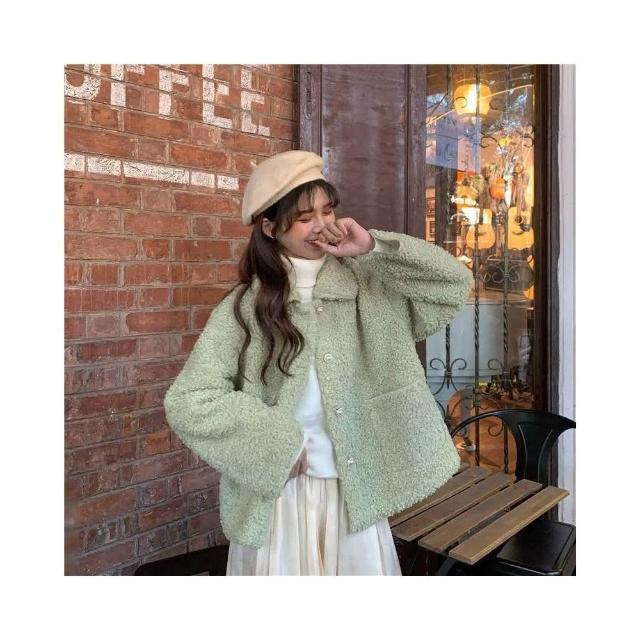 JDUDS加絨加厚百搭POLO領仿羊羔毛絨外套 仿羊羔毛外套 大尺碼上衣 女學生慵懶風