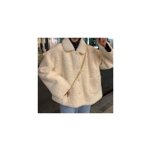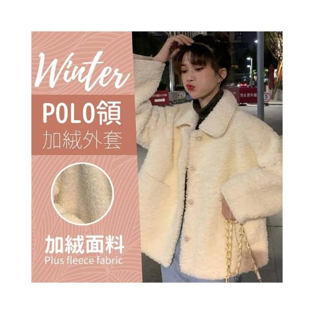 JDUDS加絨加厚百搭POLO領仿羊羔毛絨外套 仿羊羔毛外套 大尺碼上衣 女學生慵懶風