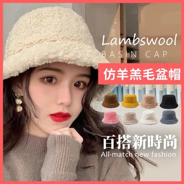 JDUDS秋冬仿羊羔毛漁夫帽 毛毛帽 漁夫帽 仿羊羔毛帽子
