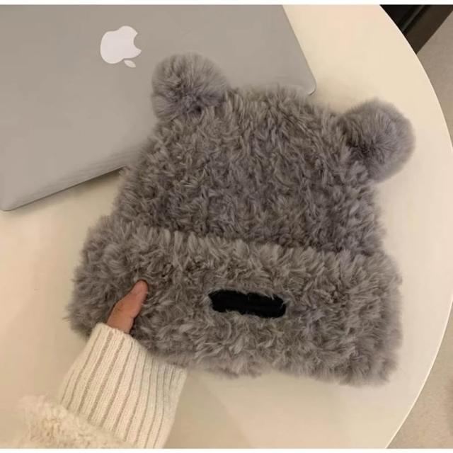 JDUDSINS款秋冬毛茸茸可愛小熊帽 毛絨帽 可愛小熊耳朵毛帽 毛帽 毛茸茸小熊帽 帽子
