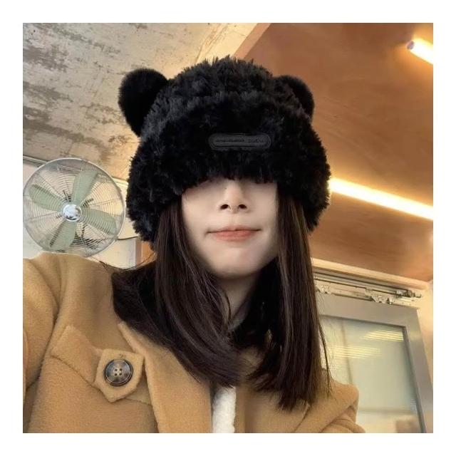 JDUDSINS款秋冬毛茸茸可愛小熊帽 毛絨帽 可愛小熊耳朵毛帽 毛帽 毛茸茸小熊帽 帽子