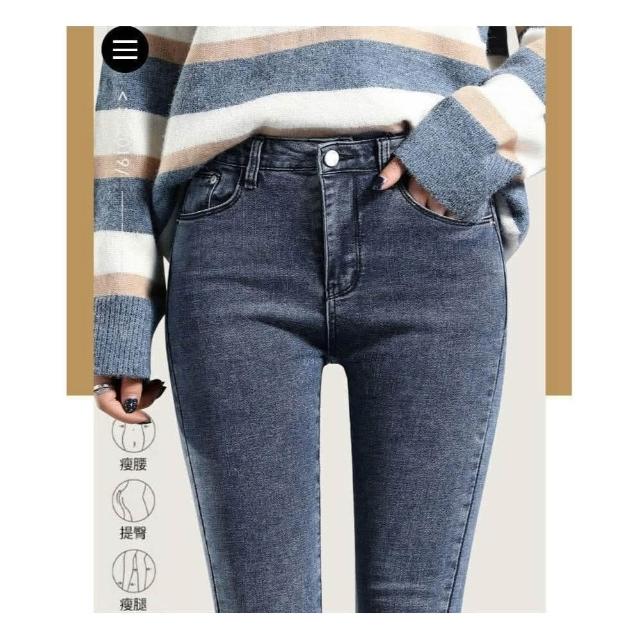 JDUDS加絨高腰修身彈力牛仔鉛筆褲 加絨牛仔九分褲 加絨牛仔褲 保暖牛仔褲 冬季牛仔褲 女牛仔褲