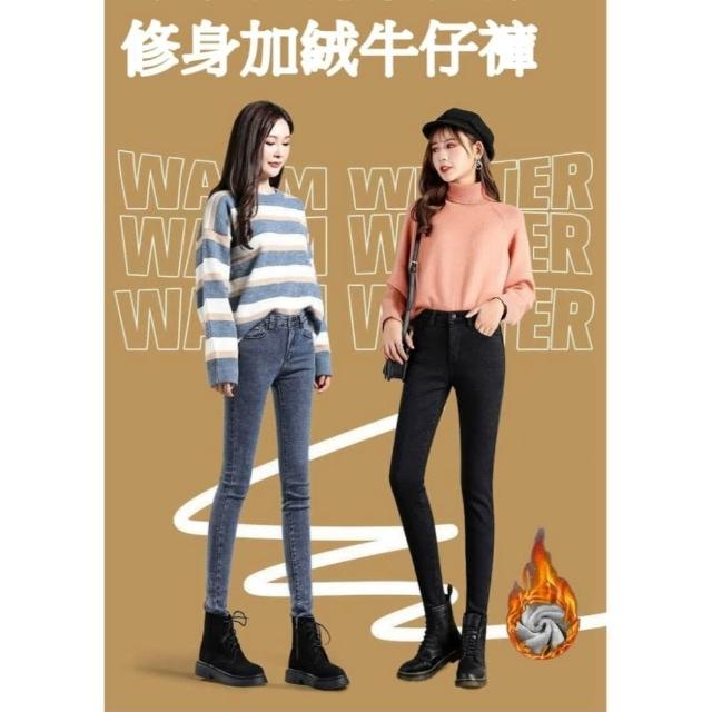 JDUDS加絨高腰修身彈力牛仔鉛筆褲 加絨牛仔九分褲 加絨牛仔褲 保暖牛仔褲 冬季牛仔褲 女牛仔褲