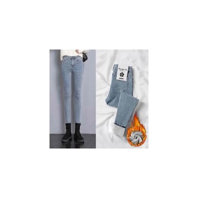 JDUDS加絨高腰修身彈力牛仔鉛筆褲 加絨牛仔九分褲 加絨牛仔褲 保暖牛仔褲 冬季牛仔褲 女牛仔褲