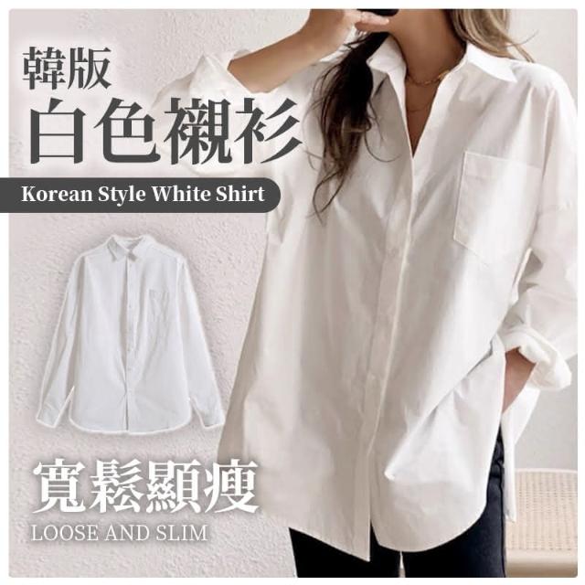 JDUDS韓系白色長袖襯衫 學生風格長袖白襯衫 中長版白襯衫 鈕扣白襯衫 女生襯衫 上班襯衫