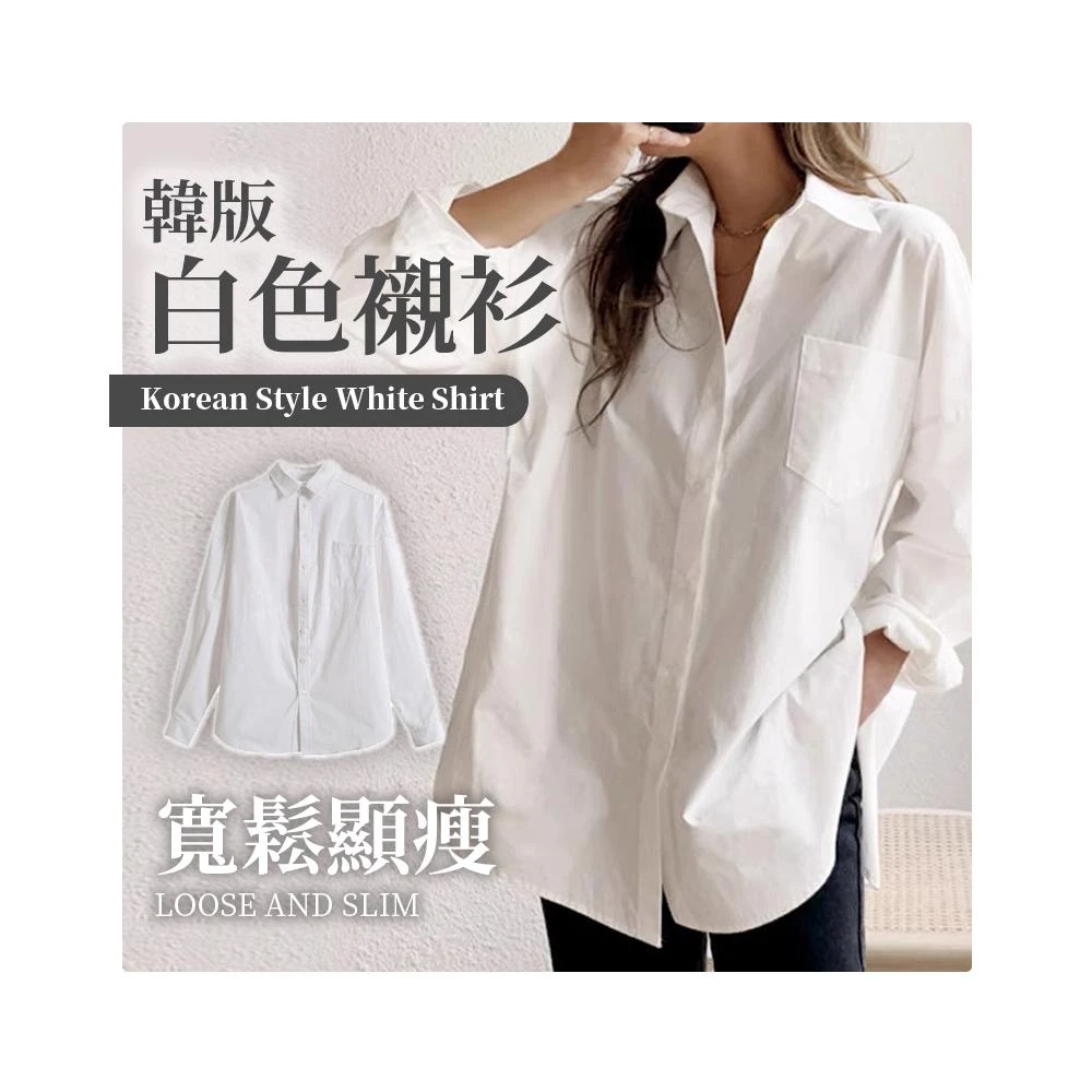 JDUDS韓系白色長袖襯衫 學生風格長袖白襯衫 中長版白襯衫 鈕扣白襯衫 女生襯衫 上班襯衫