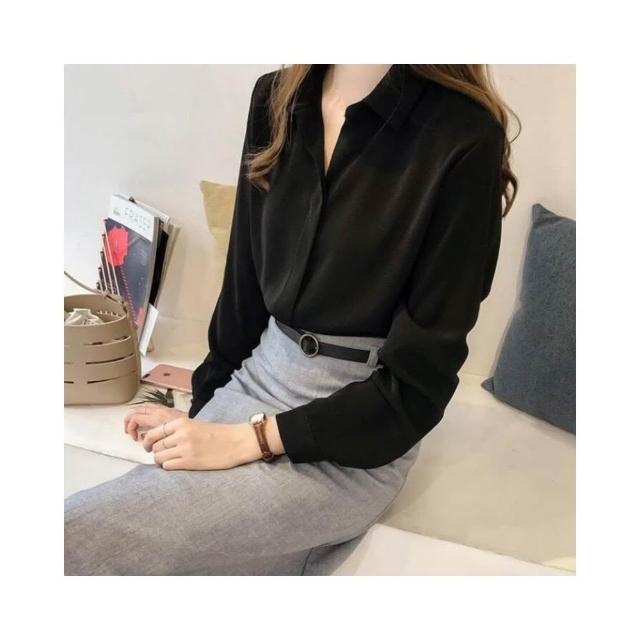 JDUDS雪紡長袖襯衫 純色襯衫 OL風襯衫 雪紡打底襯衫 女襯衫 上班族襯衫 女上衣
