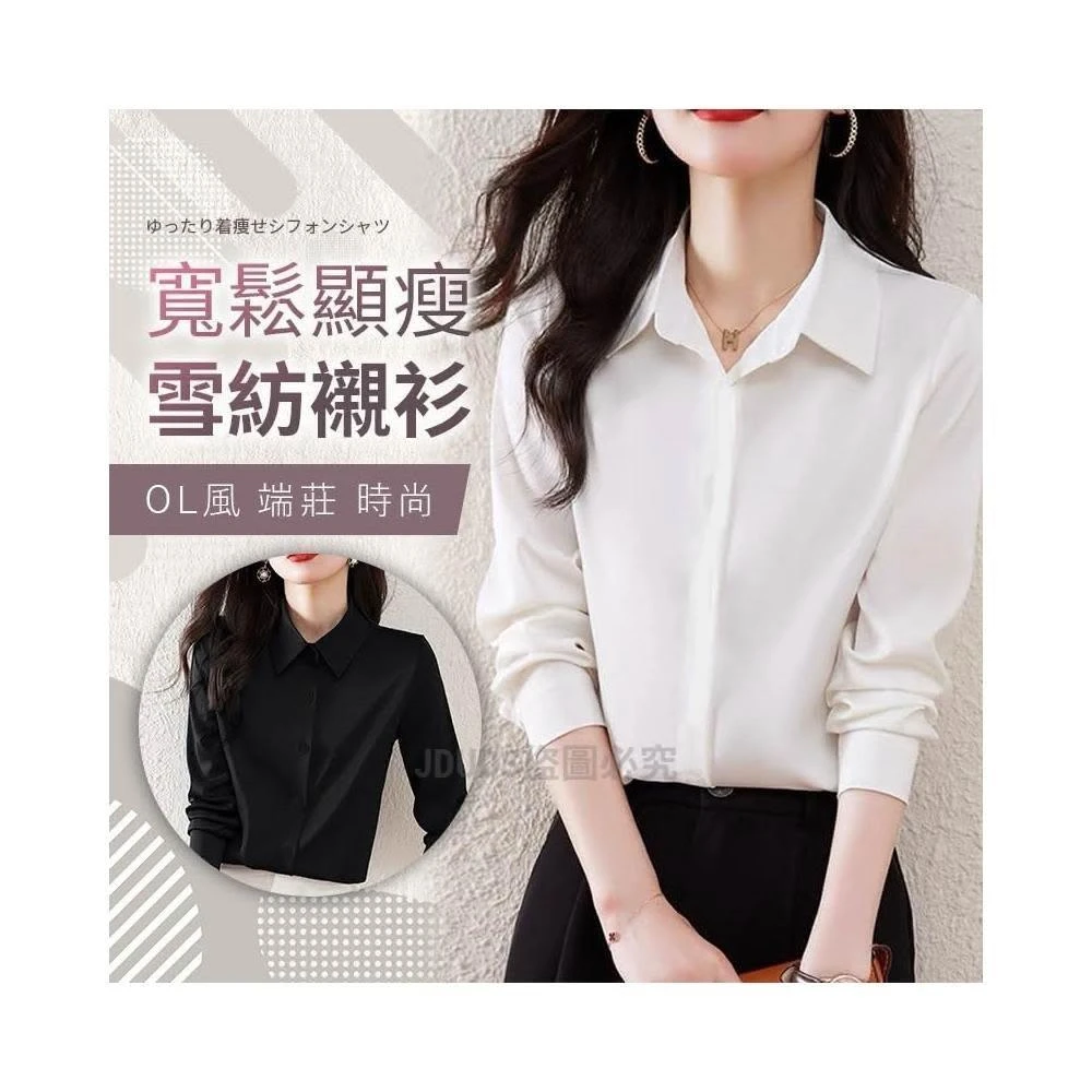 JDUDS雪紡長袖襯衫 純色襯衫 OL風襯衫 雪紡打底襯衫 女襯衫 上班族襯衫 女上衣