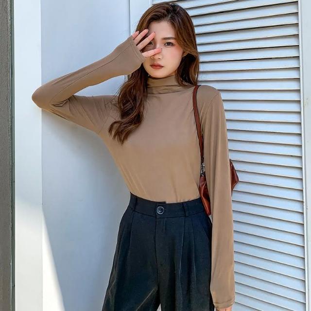 JDUDS莫代爾半高領打底衫 多色素色打底衫 立領牛奶絲內搭長袖 保暖衣 半高領保暖長袖上衣 女長袖上衣