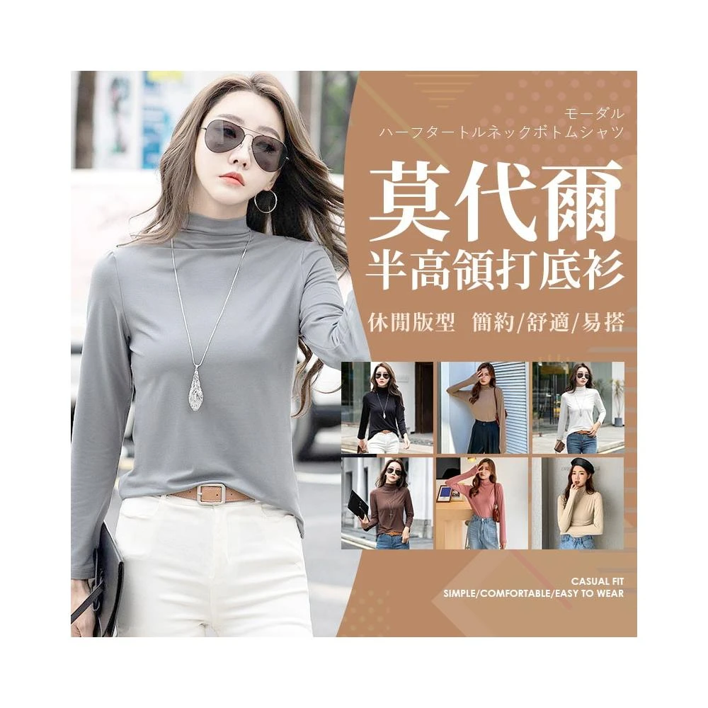 JDUDS莫代爾半高領打底衫 多色素色打底衫 立領牛奶絲內搭長袖 保暖衣 半高領保暖長袖上衣 女長袖上衣