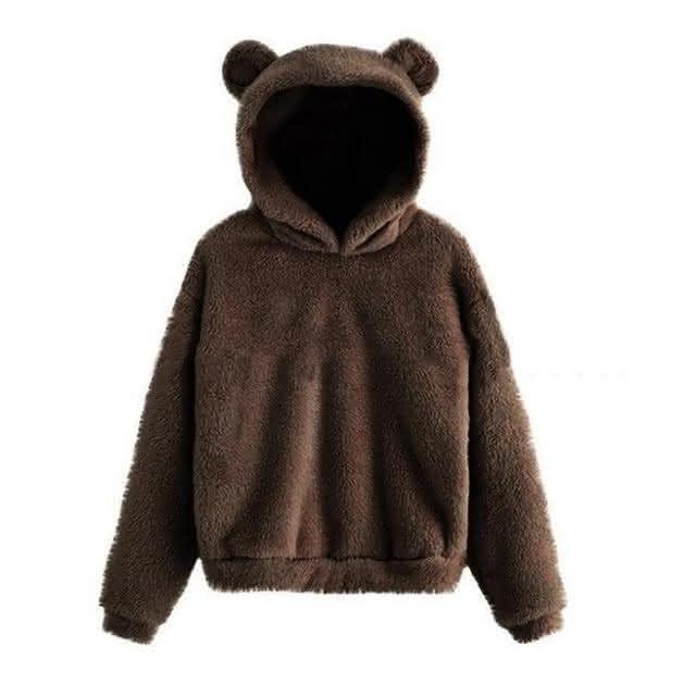 JDUDS可愛毛絨小熊耳朵 毛絨帽T 毛絨上衣 毛絨絨帽T 可愛熊耳朵帽t 秋冬上衣 毛毛帽T 女帽T