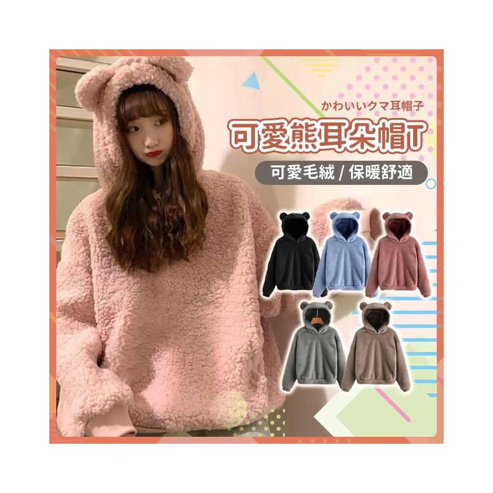 JDUDS可愛毛絨小熊耳朵 毛絨帽T 毛絨上衣 毛絨絨帽T 可愛熊耳朵帽t 秋冬上衣 毛毛帽T 女帽T