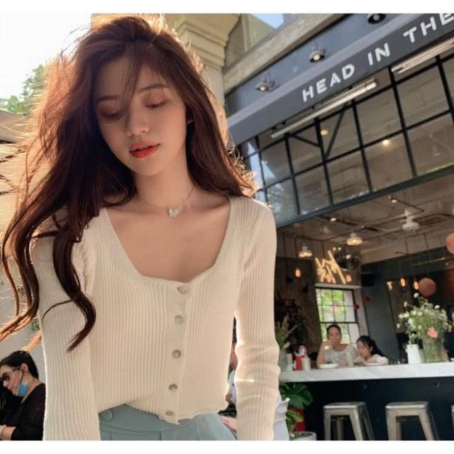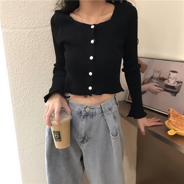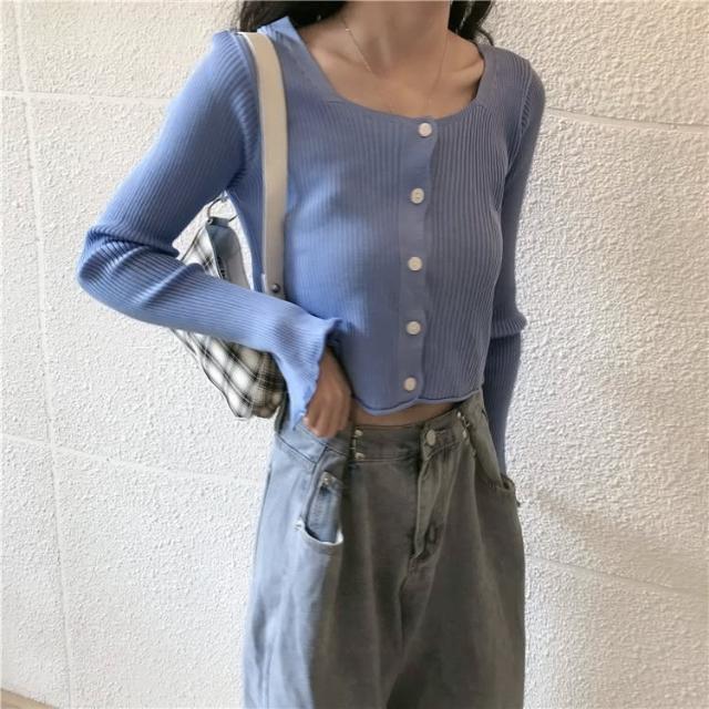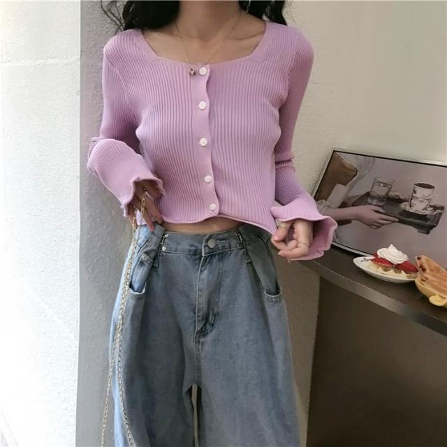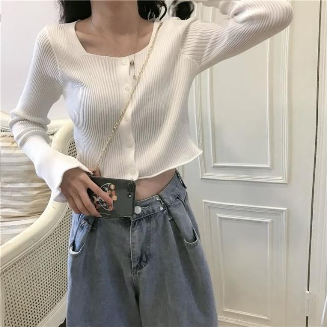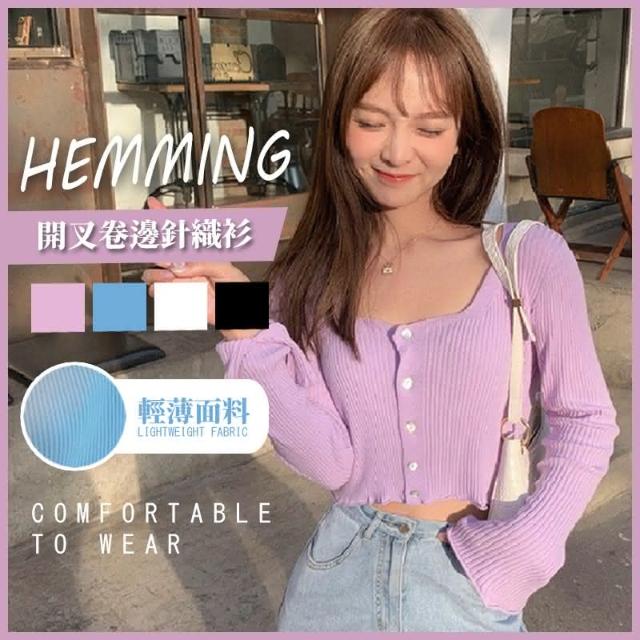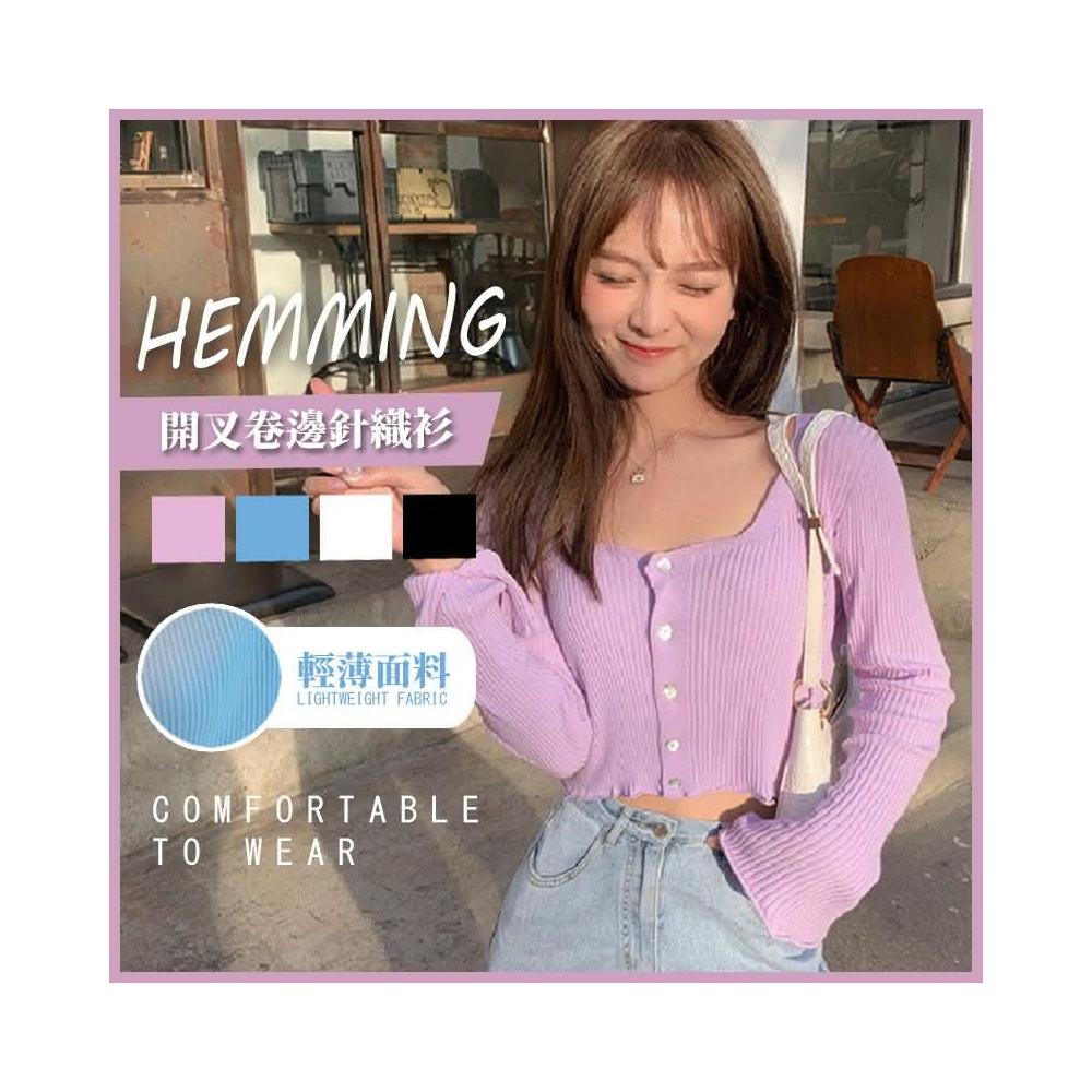 JDUDS長袖短版針織衫 夏季開叉袖口卷邊針織小開衫 女輕薄空調防曬上衣 短版長袖 女長袖上衣
