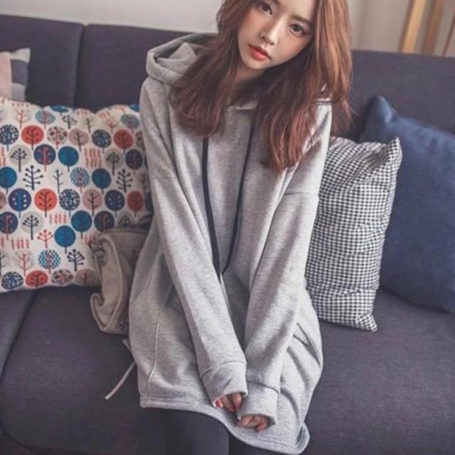 JDUDS連帽衛衣連身裙 寬鬆連帽衛衣連身裙 休閒連帽衛衣連身裙 女長袖帽T 長版帽T