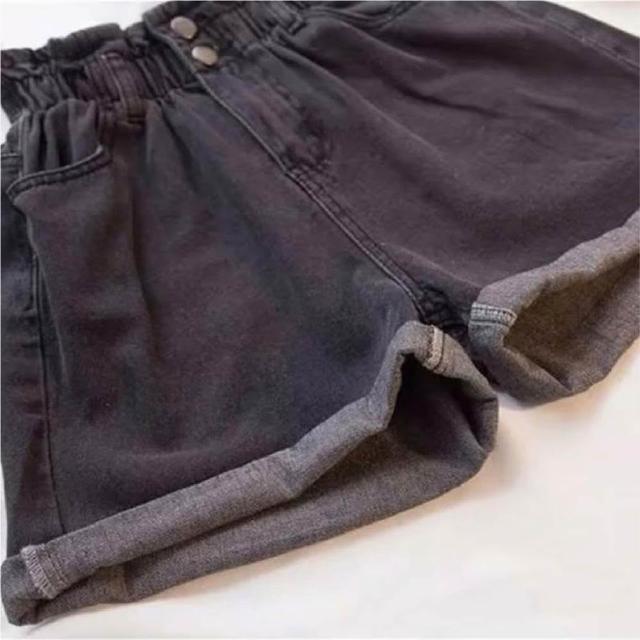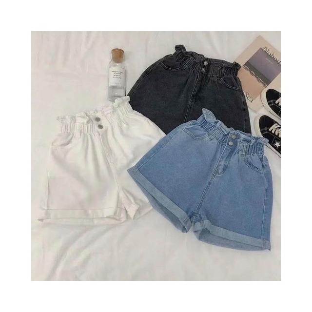 JDUDS牛仔高腰花苞反摺彈性短褲 韓系鬆緊寬版百搭顯瘦A字牛仔短褲 女生短褲 女牛仔短褲