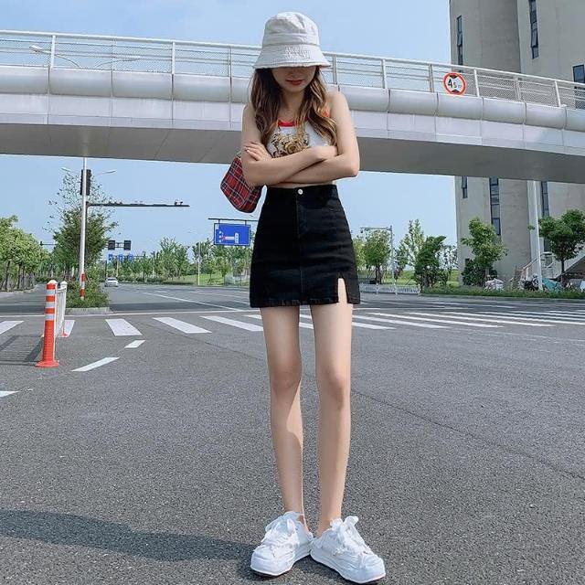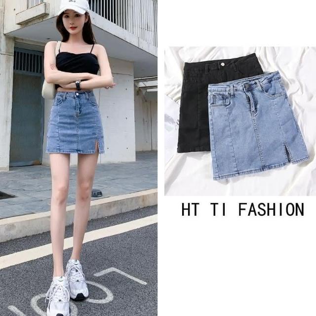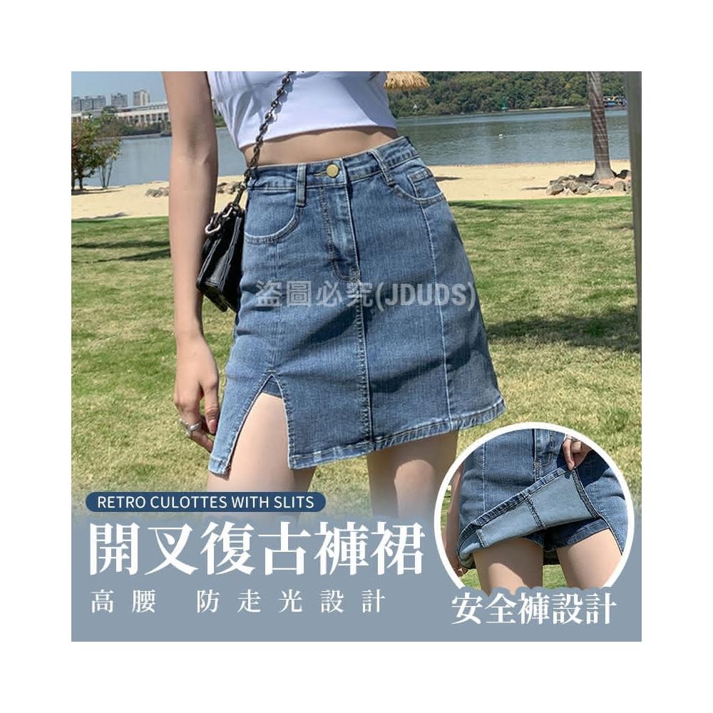JDUDS復古牛仔風下著A字褲裙開叉復古褲裙 內置防走光小短褲 辣妹風 日系女孩 防走光短裙 牛仔短裙