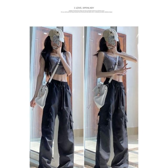 JDUDS美式復古潮流工裝褲 直筒褲 闊腿褲 休閒長褲 運動褲女 縮口褲 顯瘦長褲 女工裝褲 女生長褲