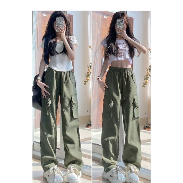 JDUDS美式復古潮流工裝褲 直筒褲 闊腿褲 休閒長褲 運動褲女 縮口褲 顯瘦長褲 女工裝褲 女生長褲