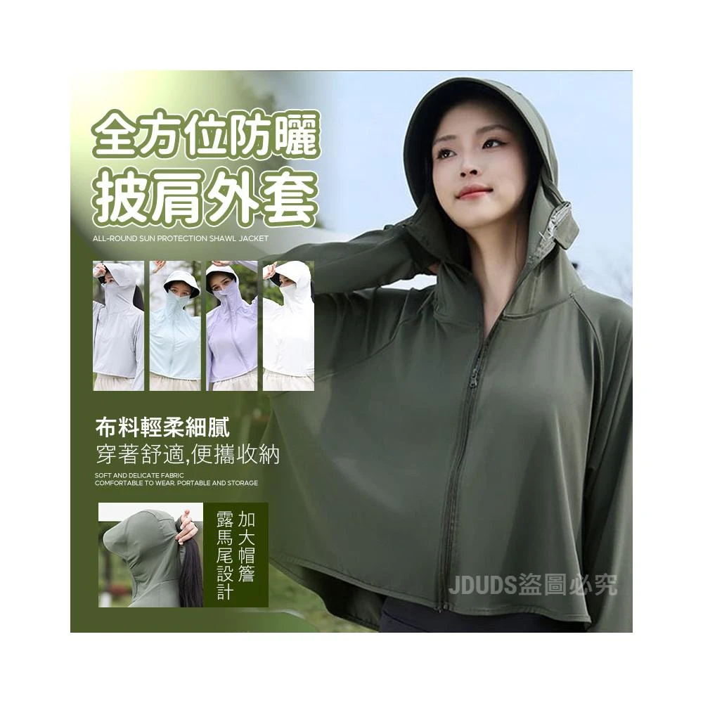JDUDS新款全方位防曬披肩外套 抗UPF56+ 抗紫外線 冰絲面料 清爽透氣 防曬外套
