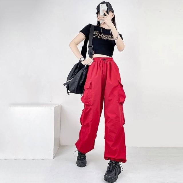 JDUDS美式降落傘工裝褲長褲 復古設計感 寬鬆束腳 工裝褲 大口袋 寬鬆休閒褲 女生長褲 女工裝褲