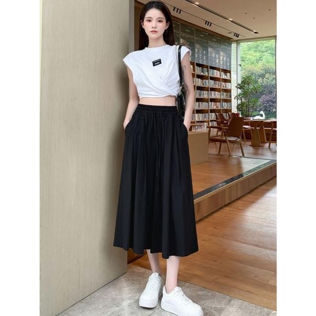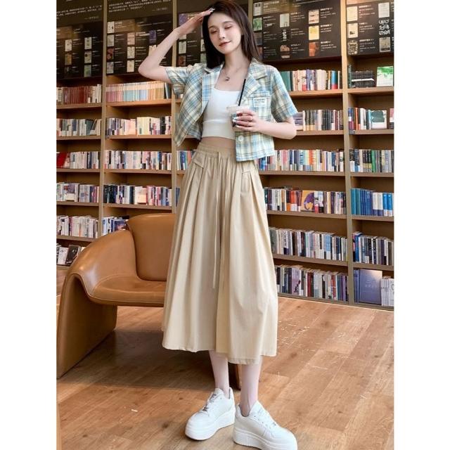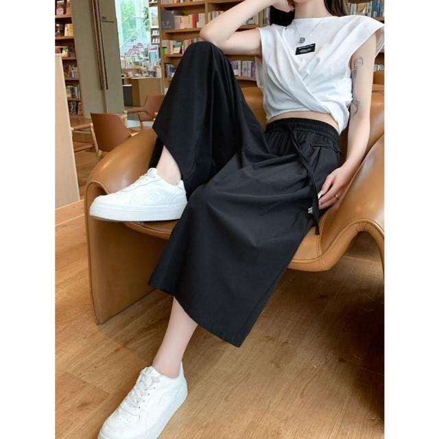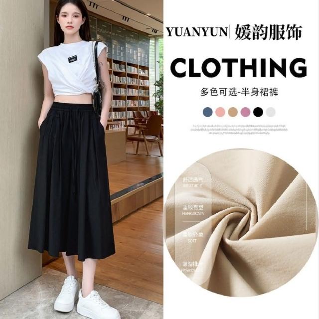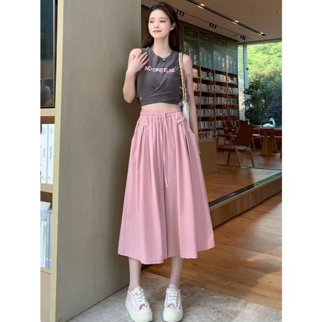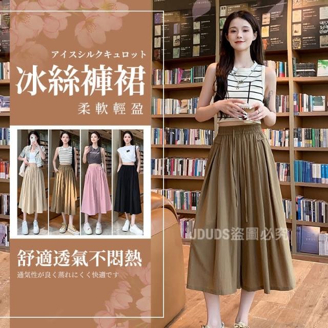 JDUDS女生冰絲高腰闊腿褲裙 冰絲褲裙 高腰褲 寬褲 七分褲裙 女褲裙 超寬褲腳 夏季涼感 薄長褲