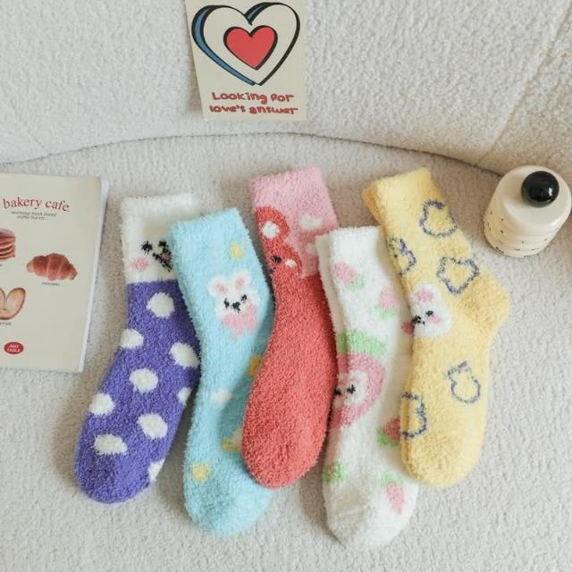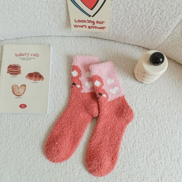JDUDS珊瑚絨襪 居家襪 保暖襪 可愛風珊瑚絨襪 中筒襪 毛絨襪 地板襪 襪子