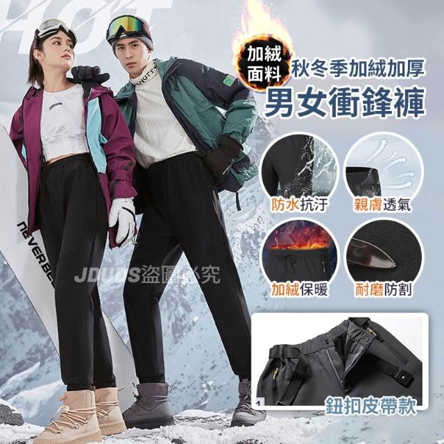 JDUDS冬季加絨加厚防水情侶衝鋒褲 男女款 登山褲 戶外保暖 冬季衝鋒褲 保暖褲 加絨 不起球 防風 男長褲 女長褲