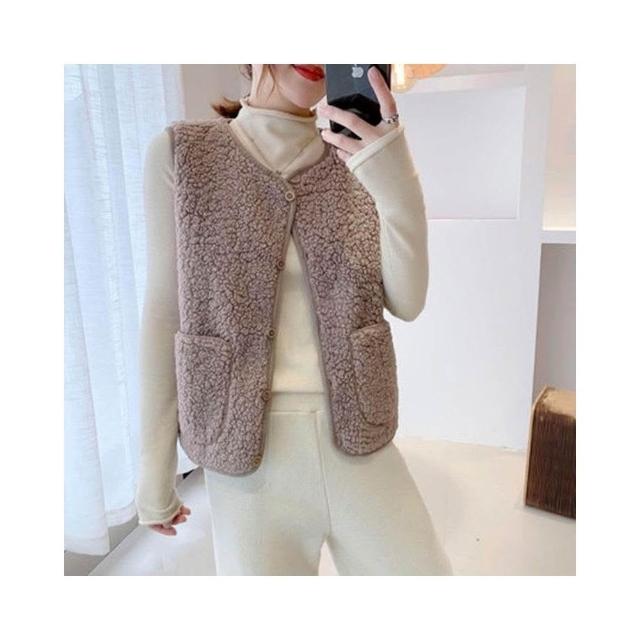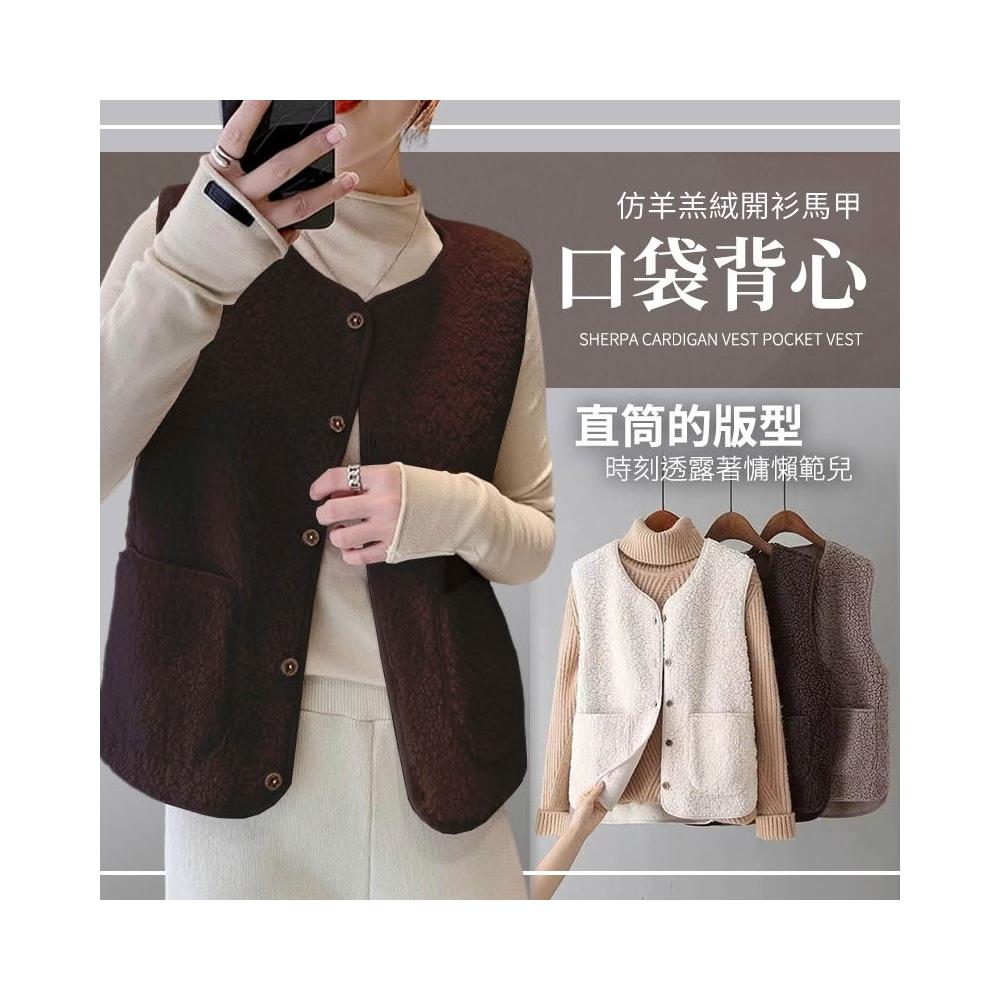 JDUDS仿羊羔絨開衫馬甲女生口袋背心 鈕扣背心 絨毛背心 韓系背心 毛毛背心 可愛背心 顆粒絨背心