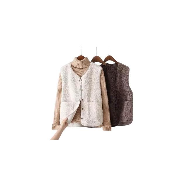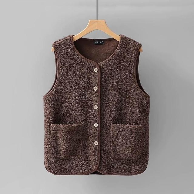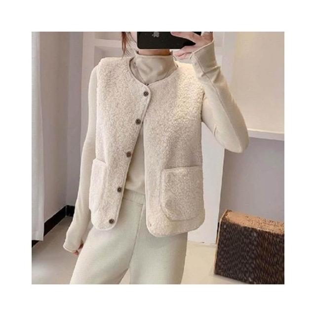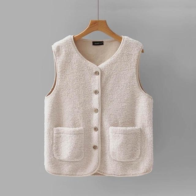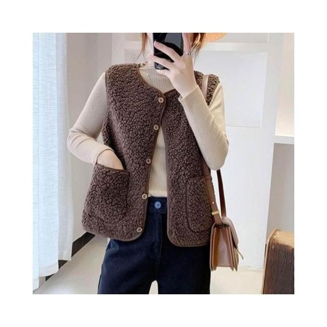 JDUDS仿羊羔絨開衫馬甲女生口袋背心 鈕扣背心 絨毛背心 韓系背心 毛毛背心 可愛背心 顆粒絨背心