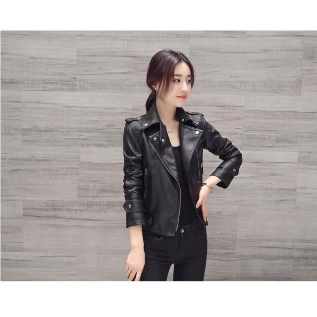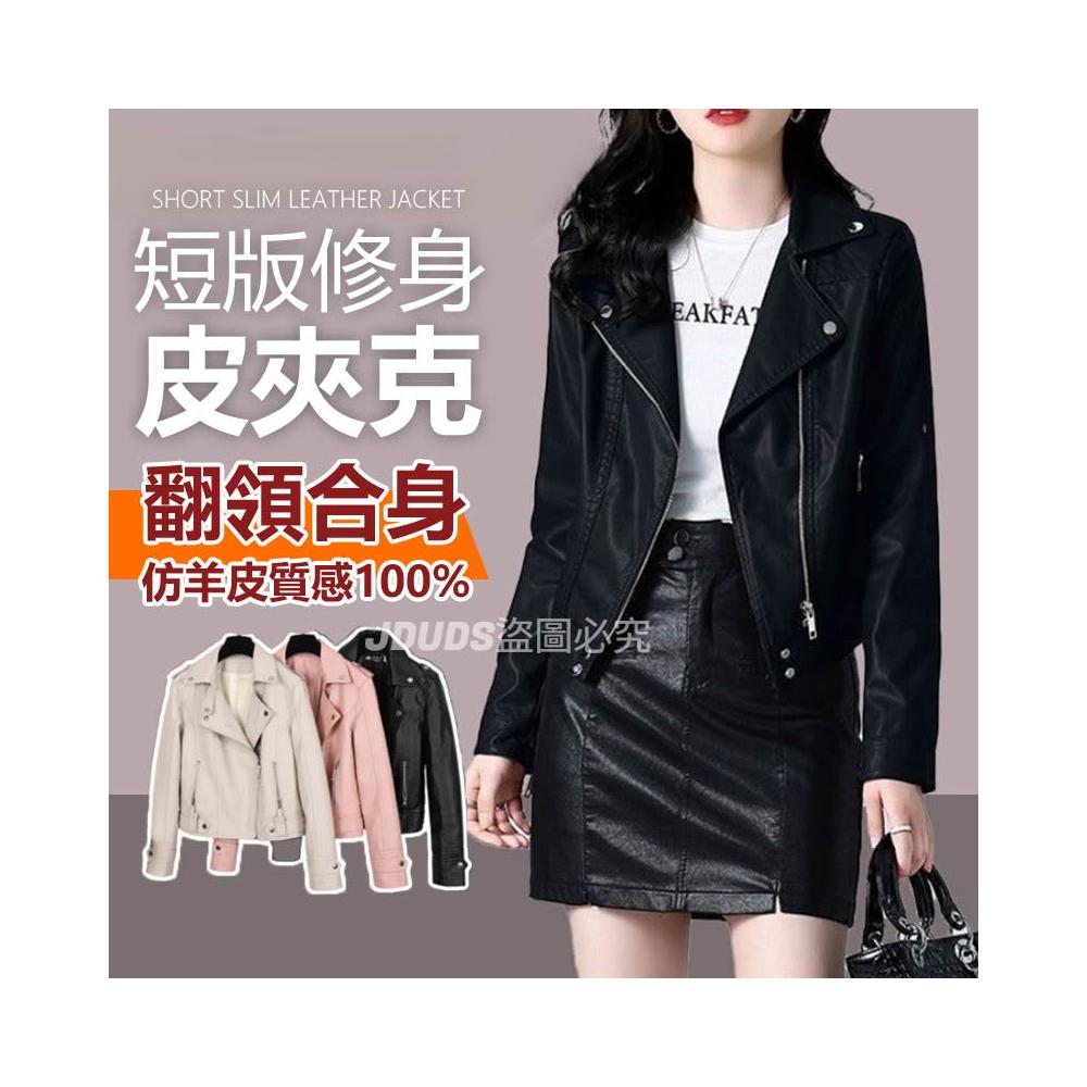 JDUDS短版修身拉鍊高級水洗皮衣 女皮夾克 女生皮衣 秋季皮衣 女皮衣 率性皮衣 翻領皮衣外套 女生外套