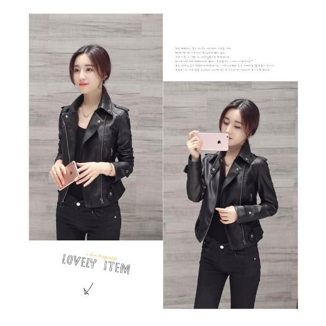 JDUDS短版修身拉鍊高級水洗皮衣 女皮夾克 女生皮衣 秋季皮衣 女皮衣 率性皮衣 翻領皮衣外套 女生外套
