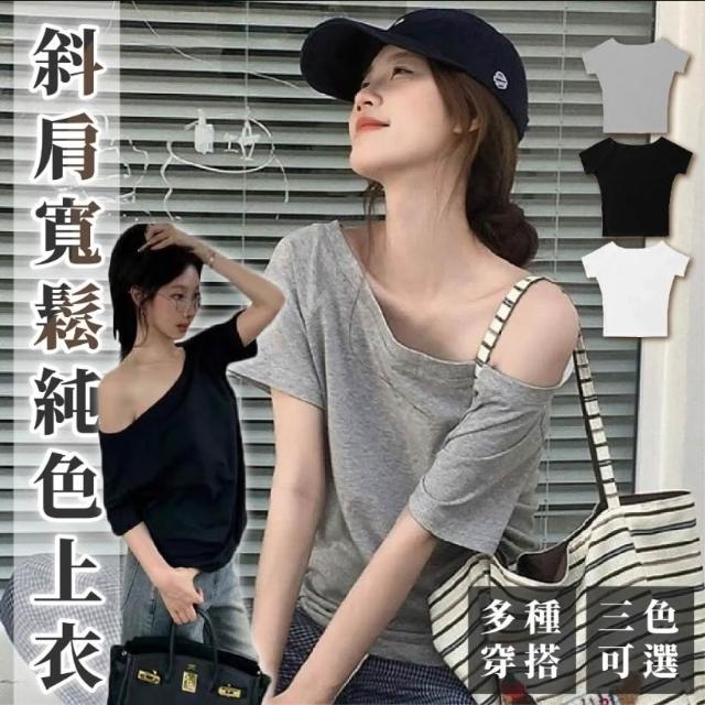 JDUDS辣妹斜肩一字領短袖寬鬆T恤 一字領上衣 純色上衣 寬鬆上衣 女生短袖上衣 女T恤 露肩上衣