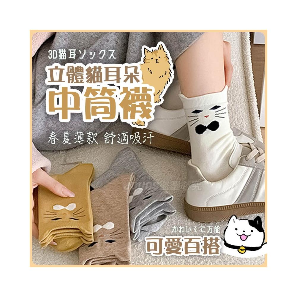 JDUDS韓系立體貓耳朵中筒襪 春夏薄襪 女襪 卡通襪 可愛襪 長襪 吸汗襪 貓咪襪 襪子